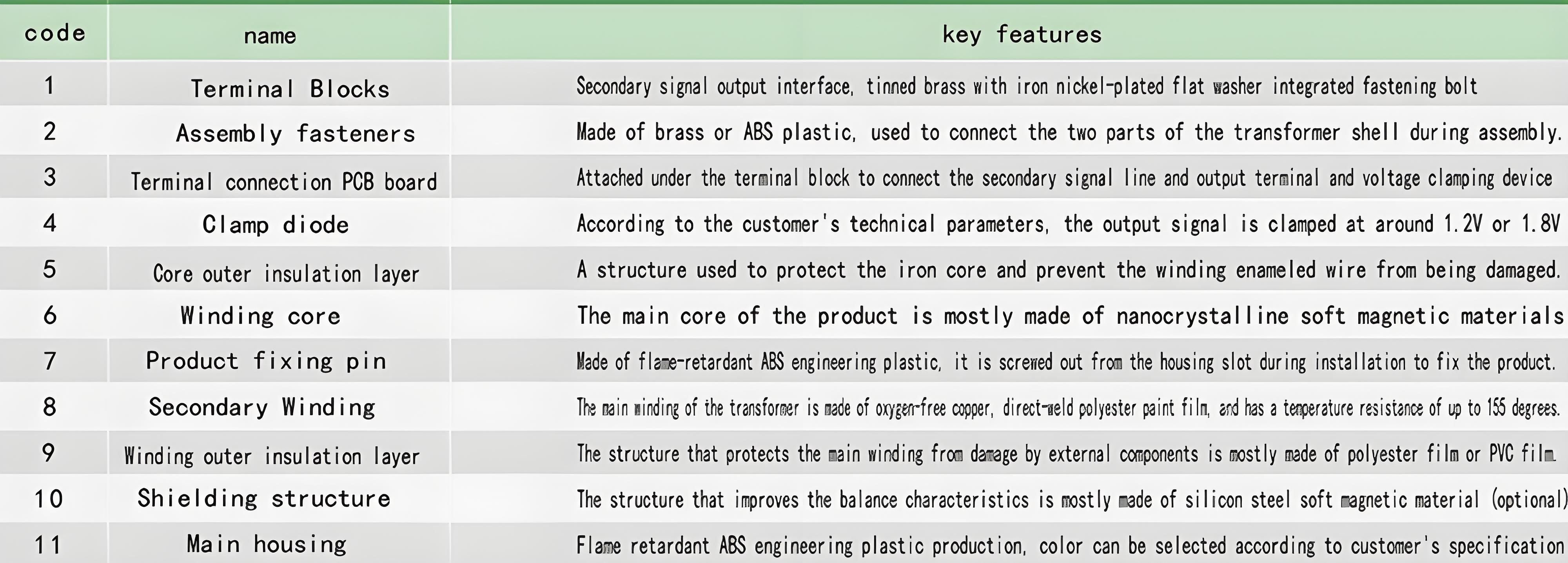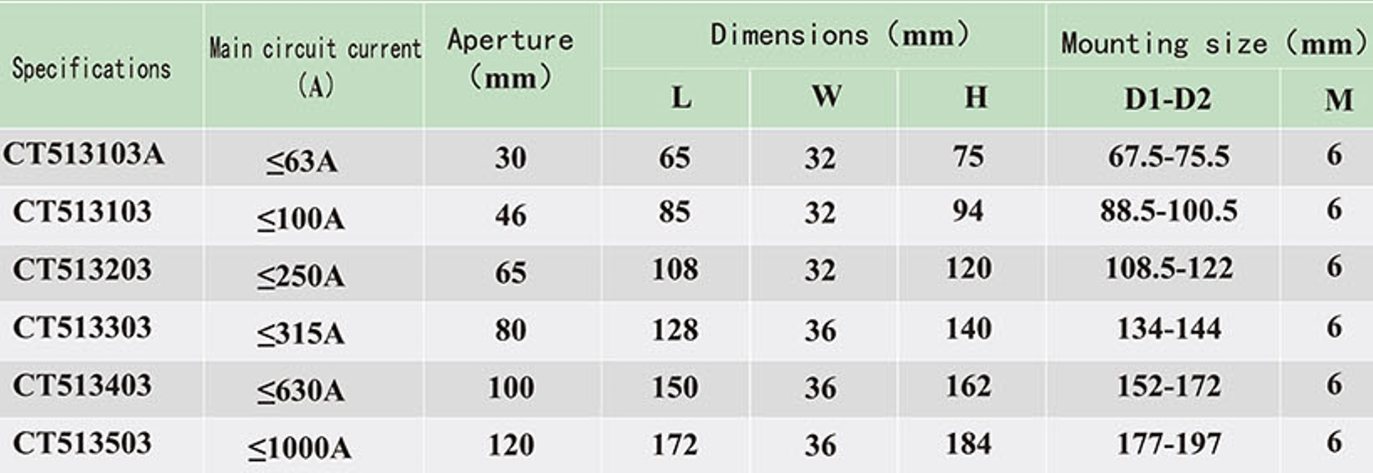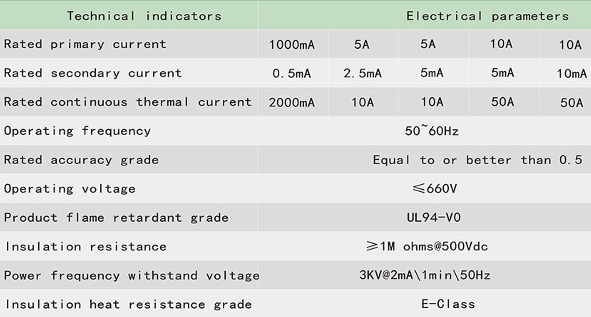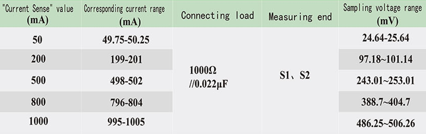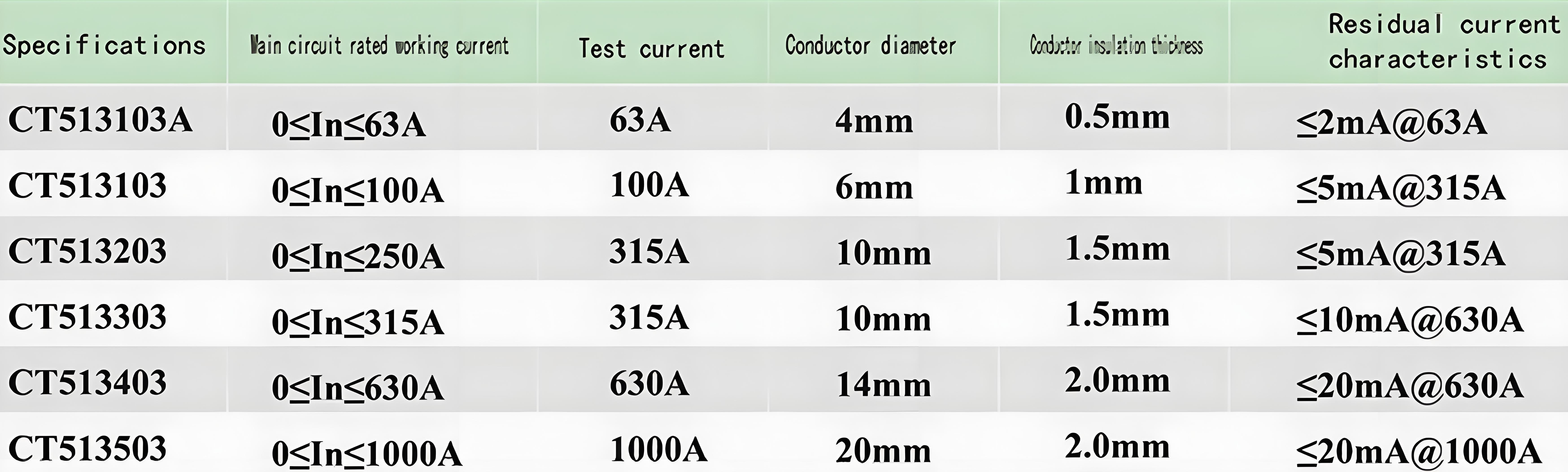 When the residual current transformer passes the corresponding sinusoidal AC current, its output sampling value voltage should meet the requirements in the following table.