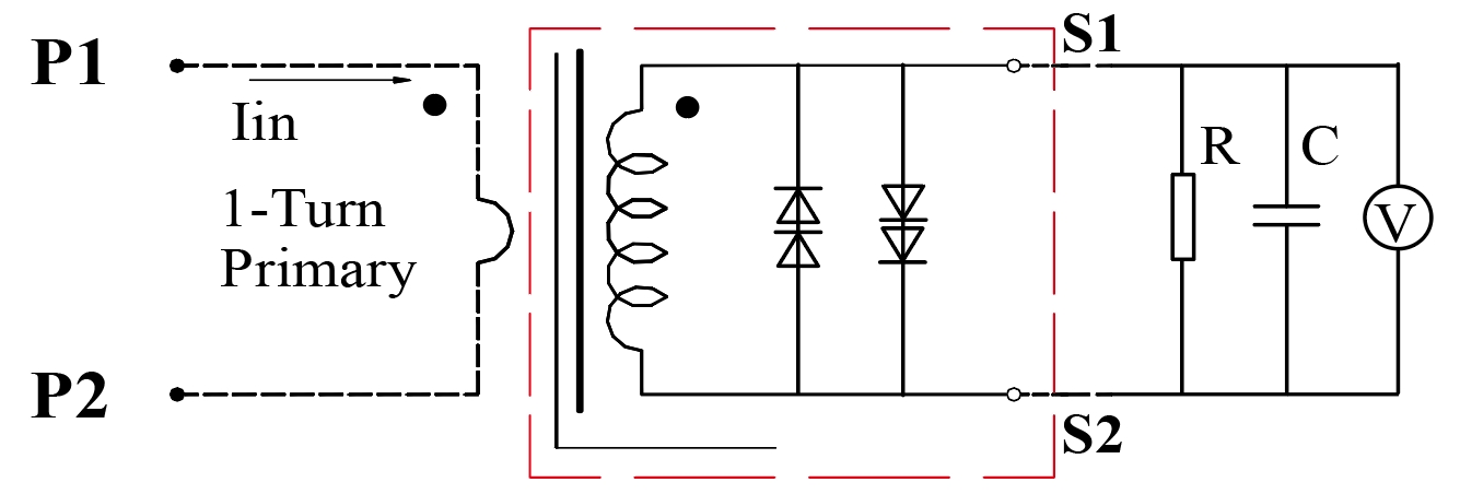 *The primary current IP flows in from the P1 terminal and out from the P2 terminal; the secondary current flows out from the S1 terminal and flows in from the S2 terminal.