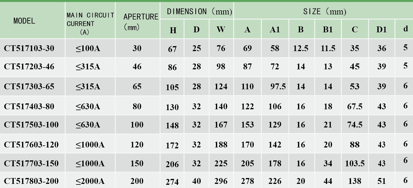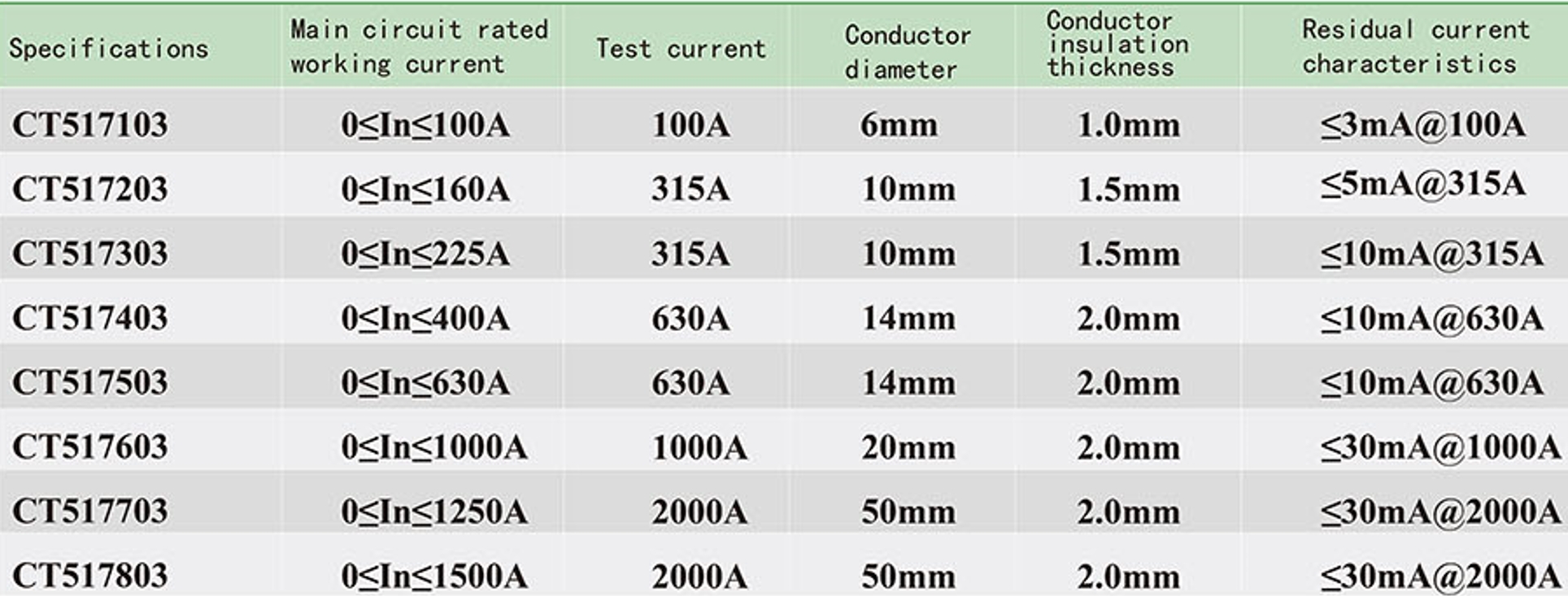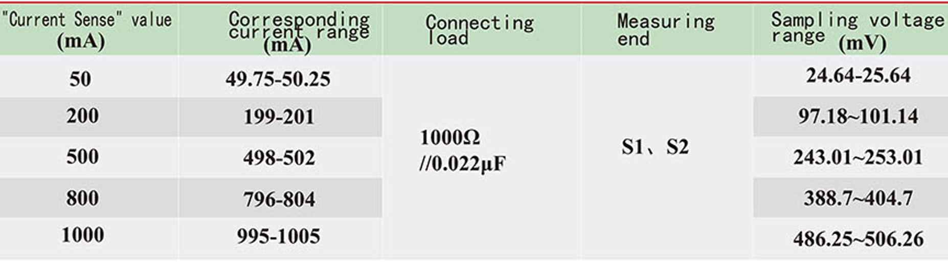 When the residual current transformer passes the corresponding sinusoidal AC current, its output sampling value voltage should meet the requirements in the following table.