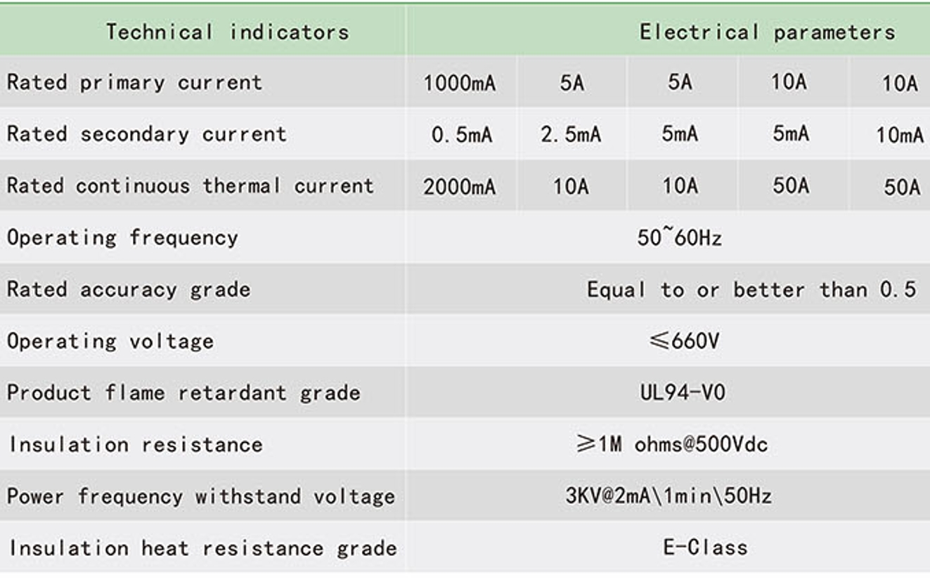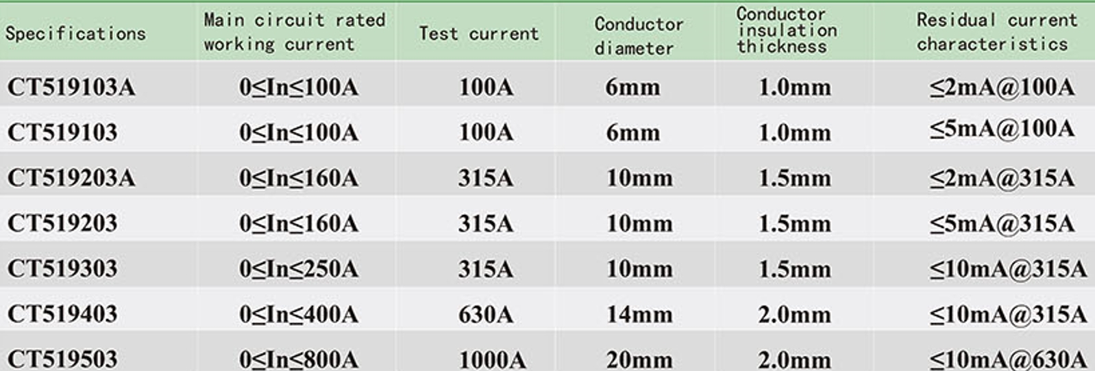When the residual current transformer passes the corresponding sinusoidal AC current, its output sampling value voltage should meet the requirements in the following table.
