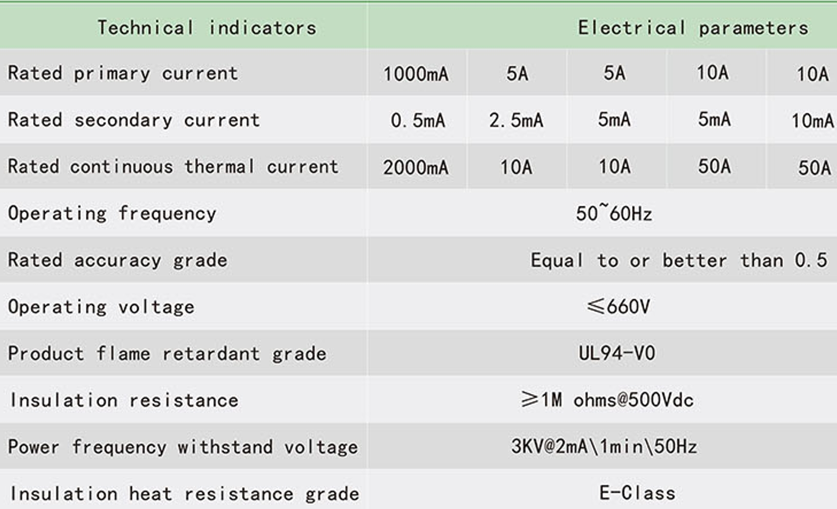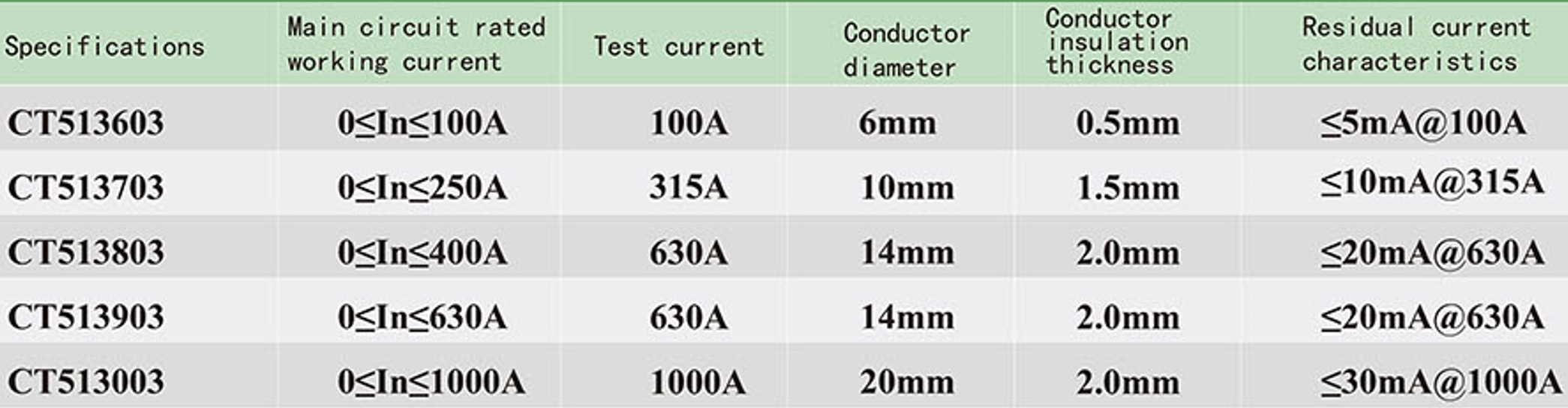 When the residual current transformer passes the corresponding sinusoidal AC current, its output sampling value voltage should meet the requirements in the following table.