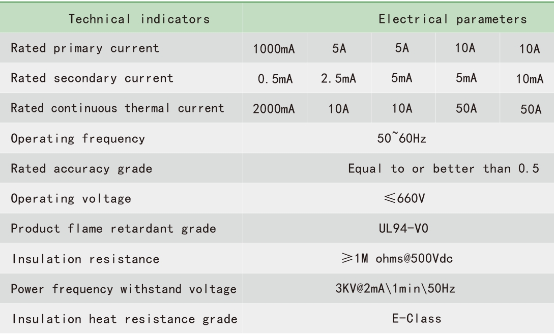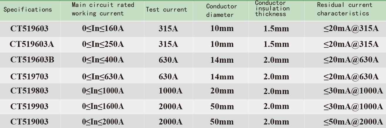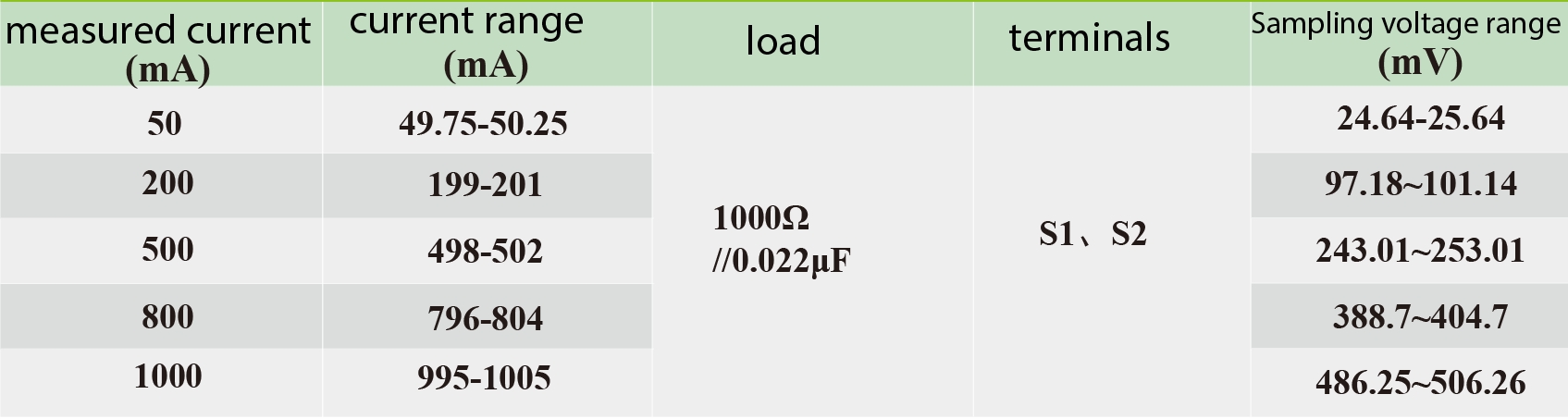 When the residual current transformer passes the corresponding sinusoidal AC current, its output sampling value voltage should meet the requirements in the following table: