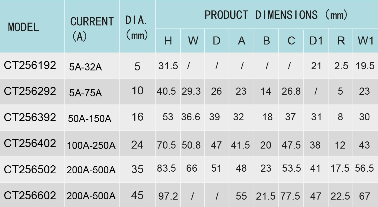 The CT256 series open-type current transformer is a series of miniaturized open-type products designed based on the improvement of current instrument and equipment software processing capabilities. Due to the increase in current monitoring equipment, a small and easy-to-install open-type current transformer is needed. The CT256 series products came into being and are increasingly widely used. Many instruments also use such products, and combined with the correction of the transformer output curve by the instrument software, more accurate results are obtained. It is a low-cost solution.