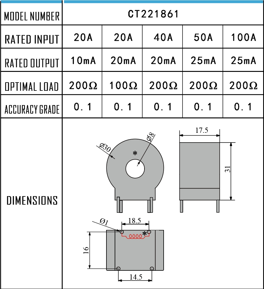 This series of products is small in size, high in precision, small in phase shift, and easy to use. It can accurately convert and isolate current signals and is mainly used in current, power and electric energy detection equipment or electric measuring instruments; at the same time, some products can use special processes to reach 10 times or even 20 times the overcurrent requirements, and can be used in power protection equipment.